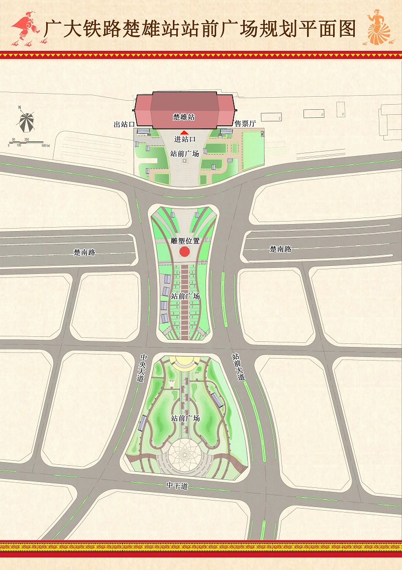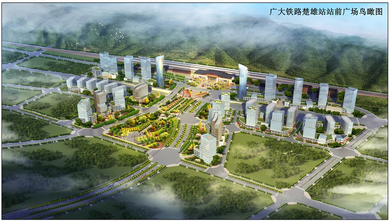 附件:广大铁路楚雄站站前广场规划平面图、鸟瞰图、实景图、场地分析图